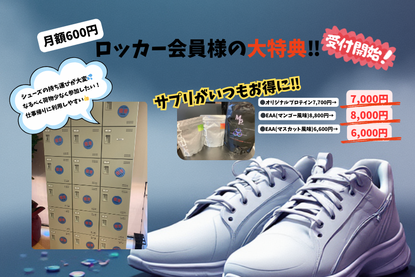 只今、ロッカー会員のご予約をいただくと、いつでもお安く購入できる特典が付いています!