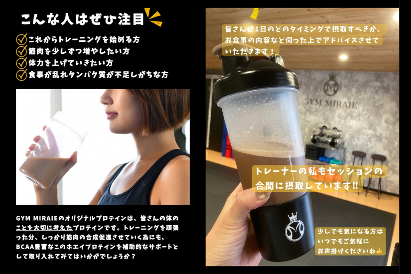 『GYM MIRAIEオリジナルプロテイン』です!!
